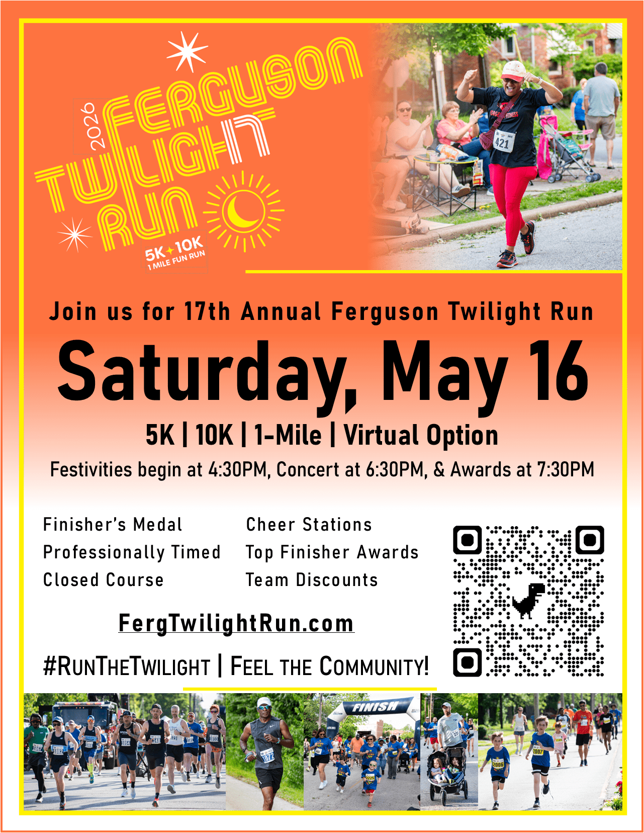 Enjoy a USATF-certified course through Ferguson’s beautiful historic neighborhoods in the 17th annual Ferguson Twilight Run managed under Live Well Events. The 2026 event includes a 5K, 10K, and 1-mile race options. There is also an option to support as a virtual participant. The event benefits nonprofits in North St. Louis County.